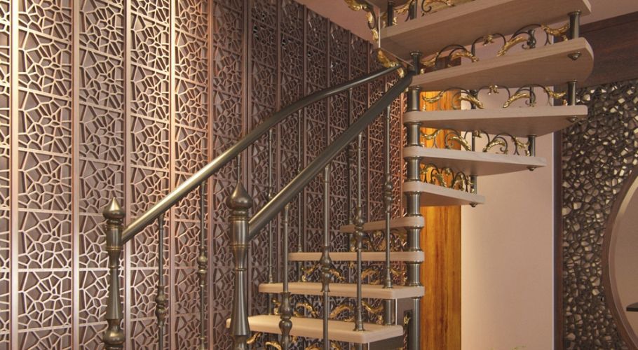 • лестницы на металлокаркасе с деревянными ступенями – оригинальное решение, поскольку сочетание материалов смотрится оригинально и придает помещению неповторимый стиль. Часто такой вариант используется для изготовления винтовых лестниц в небольших комнатах, поскольку визуально выглядит легче, чем модель из дерева и не так загромождает пространство;